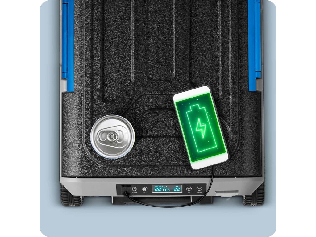 Zahvaljujoč dolgemu napajalniku za cigaretni vtič lahko hladilnik enostavno priključite na vtičnico v avtomobilu med počitkom npr. na kampu.