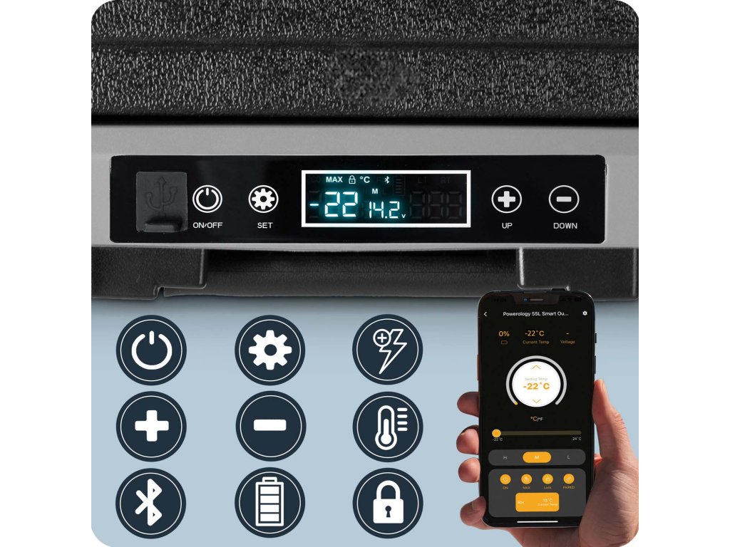 Namenska aplikacija za nadzor potovalnega hladilnika zagotavlja ne le udobje daljinsko upravljanje in spremljanje stanja hladilnika, ampak omogoča tudi natančno uravnavanje temperature in načina delovanja naprave.