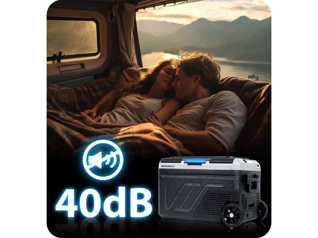 Zanesljivo hlajenje na poti! Zaradi tihega delovanja (40 dB) lahko uživate v udobju brez motečega hrupa, naj bo to med kampiranjem, vožnjo s prikolico ali sprošcanjem v koči.