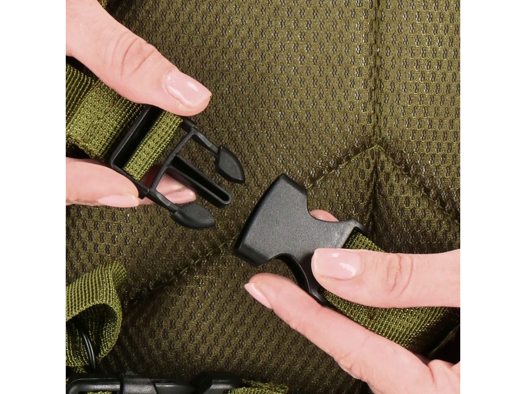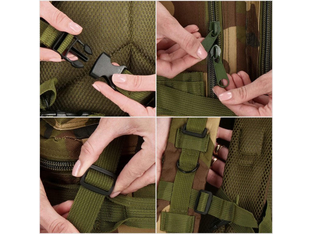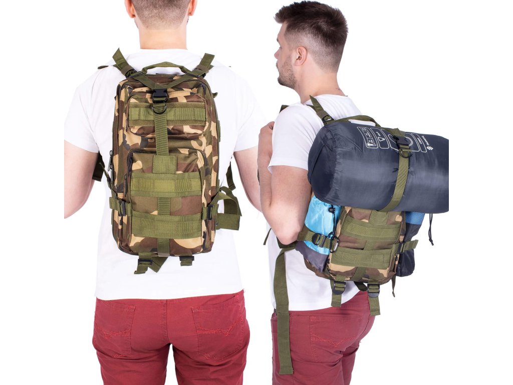 V notranjosti nahrbtnika: 1 predel z zadrgo, 1 mrežasti predel brez zadrge in 1 majhen žep za drobnarije