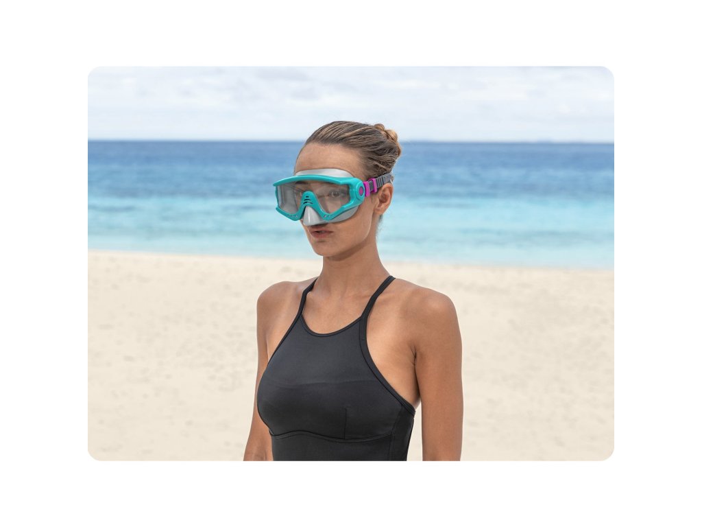 Zdaj lahko potapljaš in se do sitega zabavaš v vodi! Plavalna maska ima leče iz polikarbonata.