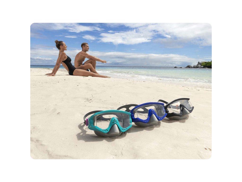 Zagotavlja širok kot gledanja, tako da ti ne uide noben element podvodnega sveta! Poleg tega se odlično prilagaja obliki obraza in preprečuje vdor vode. Nastavljiv trak omogoča, da masko ohraniš na pravem mestu.
