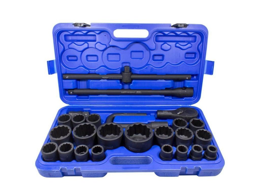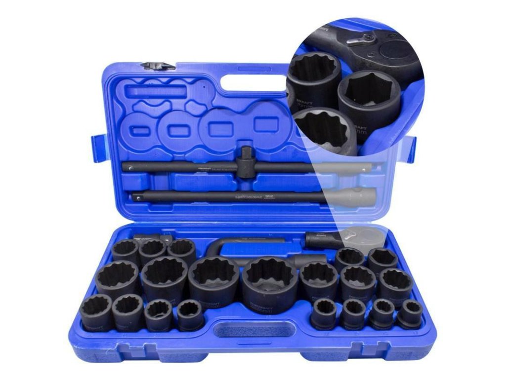 Poklicni set nastavkov je nujen v vsakem avtoservisu in odlično služi pri popravilu tovornih vozil ali kmetijskih strojev.