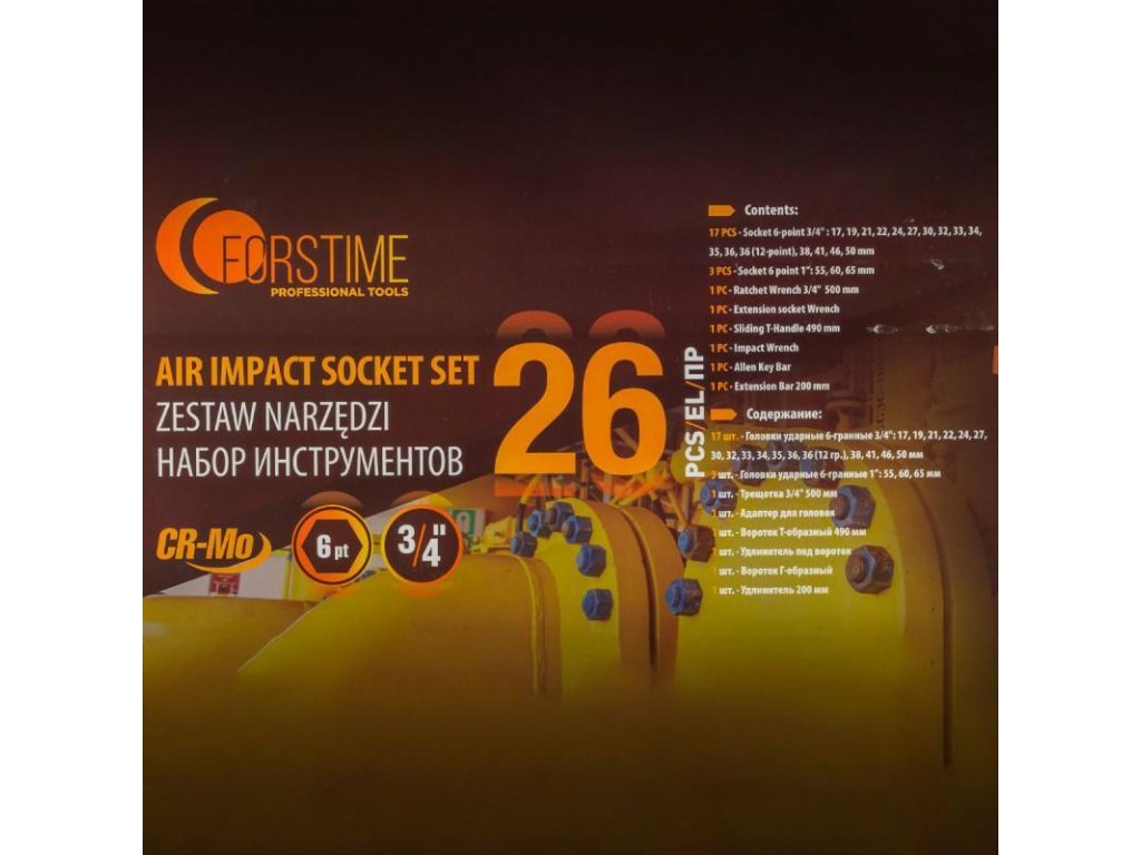 - Glavice 3/4" 6-šester: 17, 19, 22, 24, 27, 30, 32, 33, 34, 35, 36,(36-12-šester), 38, 41, 46, 50mm.