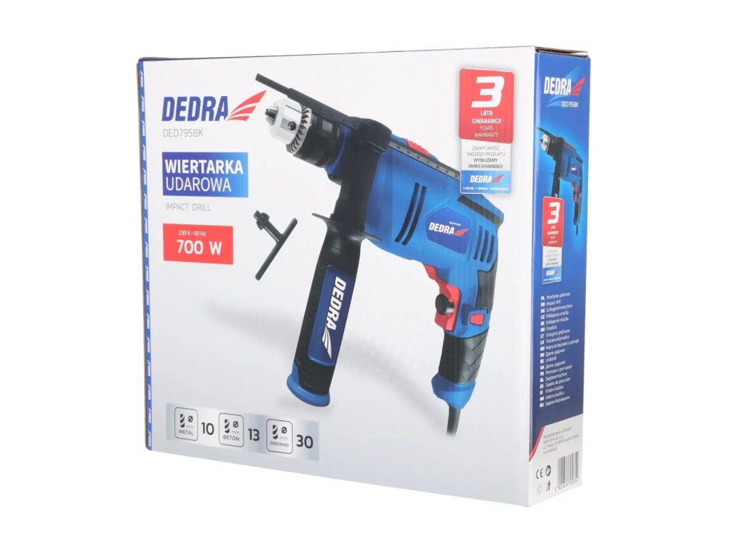 - Moč: 700 WNapetost: 230VFrekvenca: 50 HzHitrost vrtenja: 0-2300 vrt/minMaksimalni premer vrtanja v beton: 13 mmMaksimalni premer vrtanja v kovino: 10 mmMaksimalni premer vrtanja v les: 30 mmTeža: 1,5kg