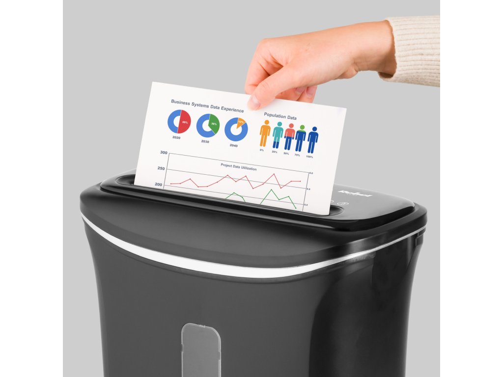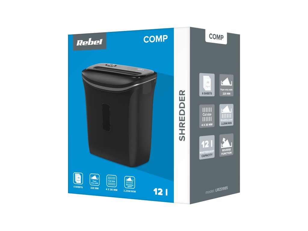 Uničevalnik Rebel omogoča enkratno uničenje 6 listov, kar omogoča hitro odstranjevanje večje količine nepotrebnih dokumentov. Poleg tega posebej zasnovan mehanizem reže dokumente v rezance dimenzij 4x30 mm, zato si lahko prepričan, da uničenih podatkov ni mogoče obnoviti.