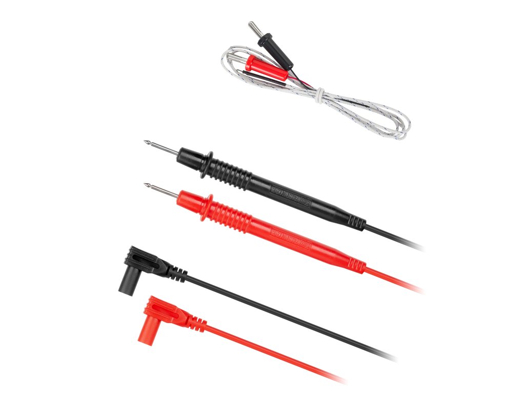 - V kompletu: merilnik, testni kabli, termočlen tipa K, navodila za uporabo