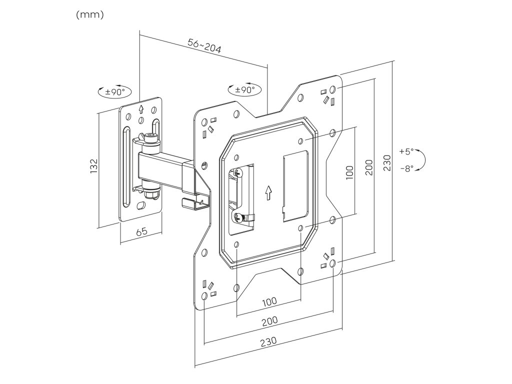 Standard VESA: 100x100, 100x200, 200x100, 200x200