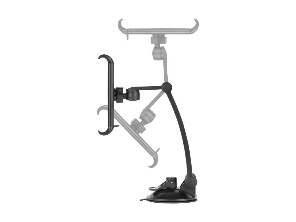 Nosilec Kruger&Matz je opremljen s trdnim sesalnim nastavkom, ki zagotavlja varno pritrditev na steklo ali drugo gladko površino. Tako tablični računalnik ostane stabilen tudi med vožnjo po neravnih cestah.