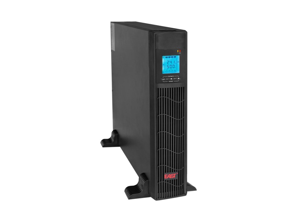 UPS1000-RT-ON/H je UPS vir podjetja EAST tipa Online, ki nudi celovito zaščito in veliko rezervo moči v majhni in ekonomični omarici. UPS vir ščiti pred izpadom napajanja in motnjami napetosti. Poleg tega ta UPS zagotavlja zaščito pred prenapolnjenjem RJ-45(in/out). Opremljen s stabilizatorjem napetosti (AVR), UPS zagotavlja čisto in stabilno napajanje priključenega naprave. Idealno za kakršnokoli uporabo doma ali v majhni pisarni. UPS1000-RT-ON/H ima rotirni zaslon LCD, ki nudi osnovne informacije o stanju naprave, priključek USB za povezavo z računalnikom, priključek RS-232, stikalo EPO in režo za omrežno kartico.