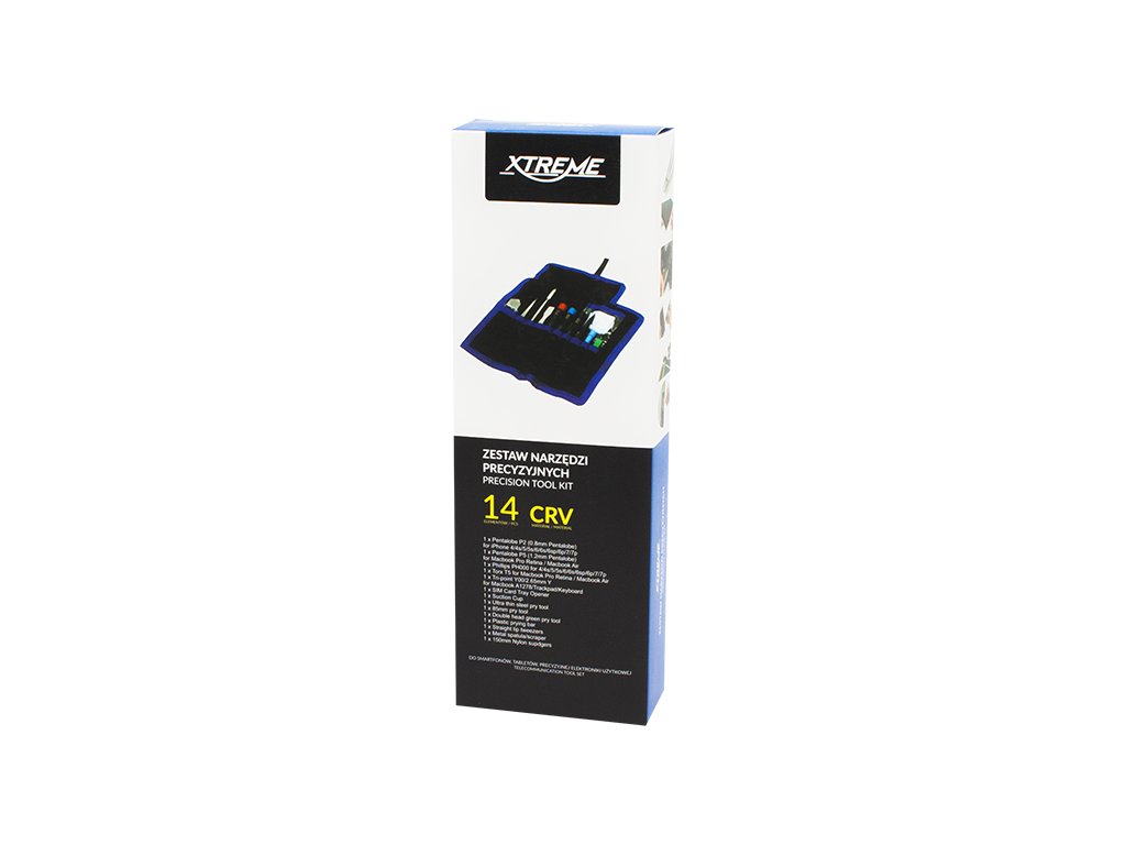 Komplet natančnih izvijačev ter drugih elementov za različne vrste servisnih del. Vse skupaj je zapakirano v priročno torbico z ločenimi mesti za orodja.