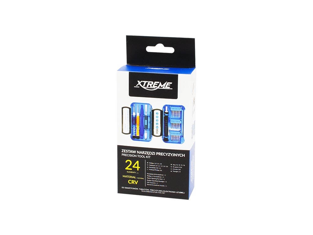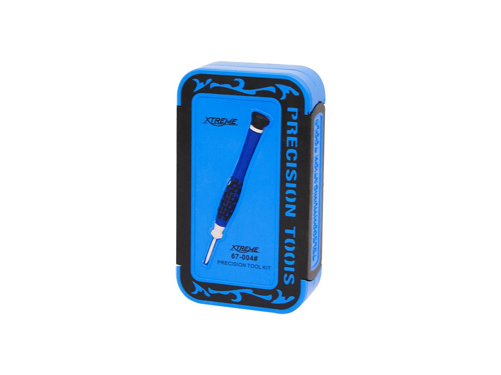 Komplet natančnih orodij s priročnim držalom za izvijače ter ostalimi elementi, potrebnimi za servisna opravila. Vse je v priročni embalaži z jasnimi opisi posameznih vrst izvijačev.