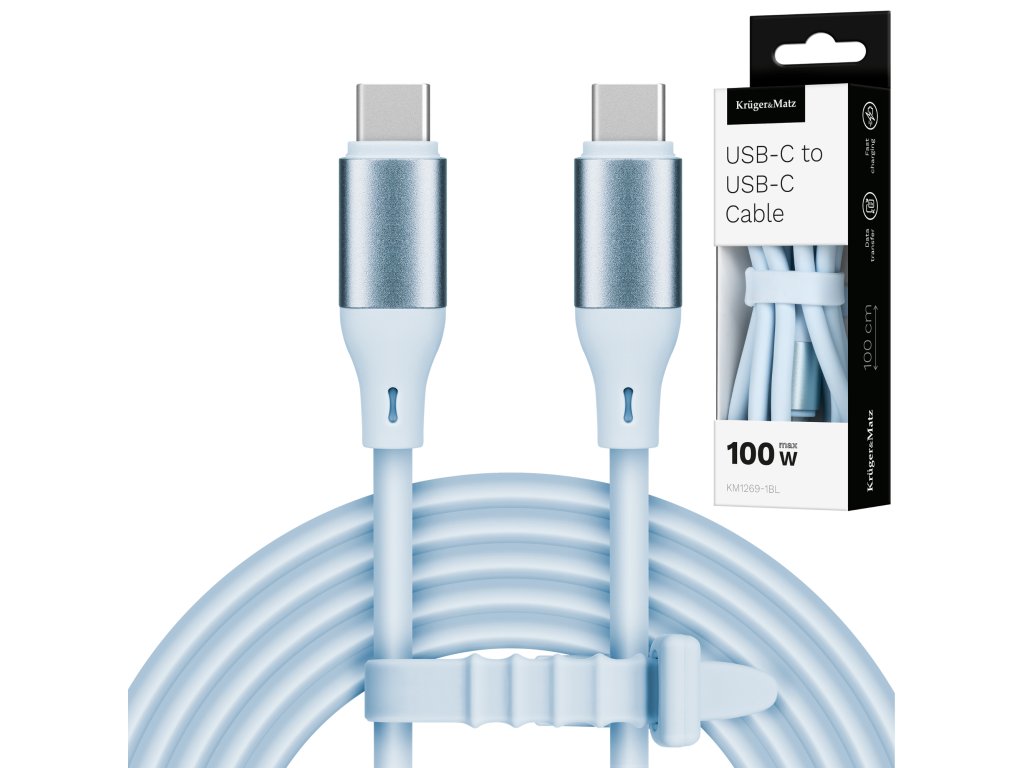 USB-C kabel - USB-C 100 W 1 m silikonski moder Kruger&Matz Basic