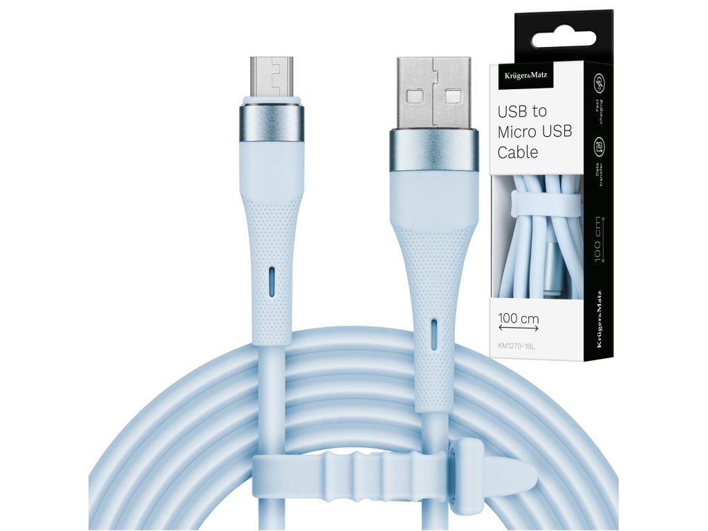 USB kabel - microUSB 1 m silikonski modri Kruger&Matz Basic