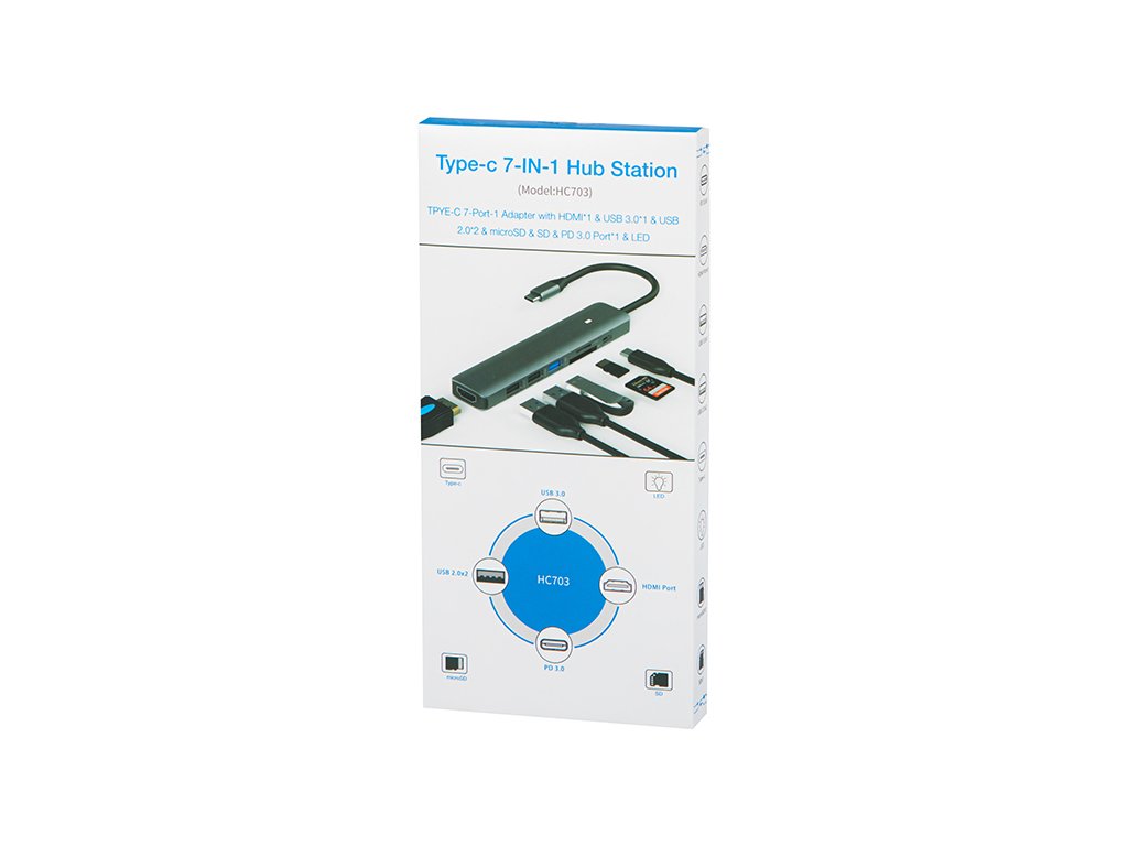 - Kompakten, majhen 7-portni USB hub