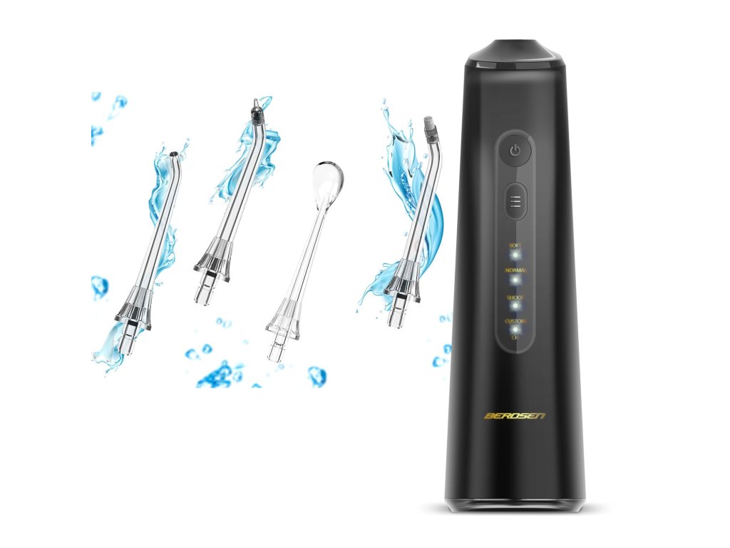 Berdsen ClearJet X6 je kompaktna Ustna prha, ki jo lahko vzamete s seboj na poslovno potovanje ali dopust. Z veliko 270-mililitrsko posodo za vodo ni veliko večja od električne zobne ščetke.