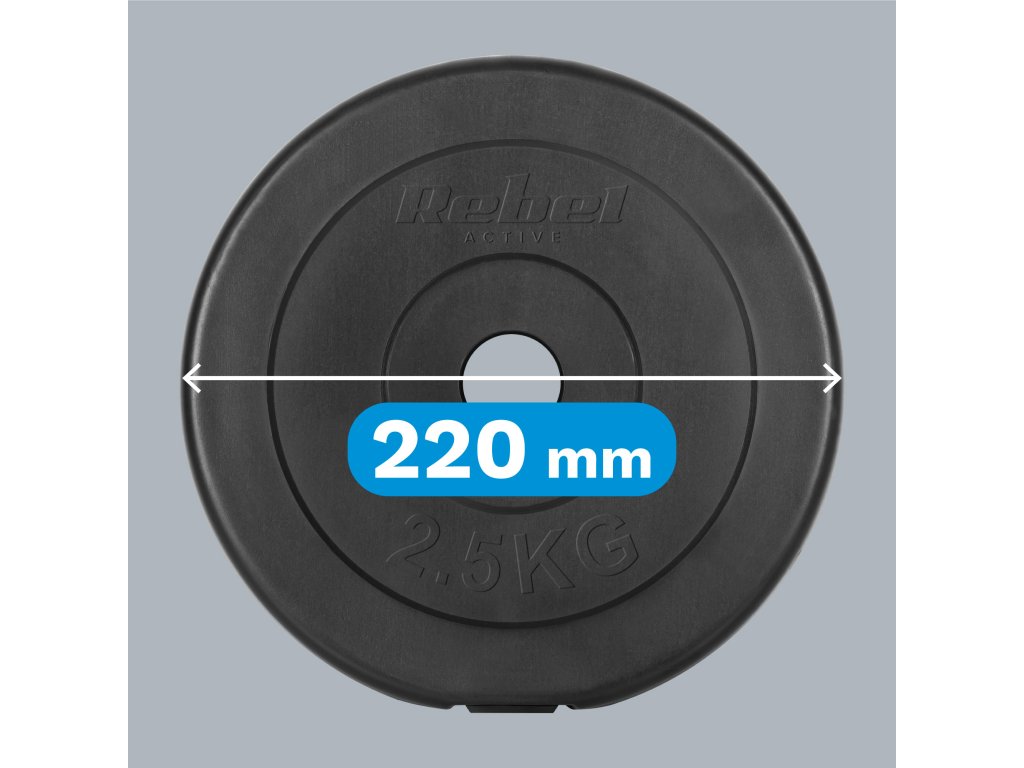 Set RBA-2115 Rebel Active, ki tehta 10 kg, bo idealno orodje za vadbo za moč doma. Zaradi kompaktnih dimenzij in ergonomične oblike plošč je njihovo shranjevanje izjemno enostavno. Posebna zaobljena zasnova z poševnim robom omogoča varno domačo vadbo brez skrbi za nenamerno poškodovanje tal ali pohištva.