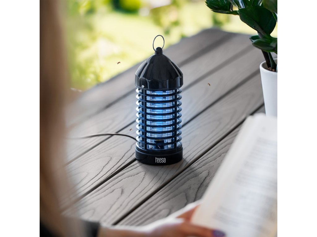 Ne marate, da vaš poletni počitek na terasi ali balkonu motijo insekti UV svetilka za insekte blagovne znamke Teesa je naprava, ki vam bo pomagala znebiti se nezaželenih gostov. To je idealna rešitev za dom, vrt ali pisarno. Naprava oddaja svetlobo UV-A, ki privlači insekte in jih odpravi z napetostjo 1000 V. Zaradi moči 2 W je energetsko varčna in obenem varna za ljudi in živali.