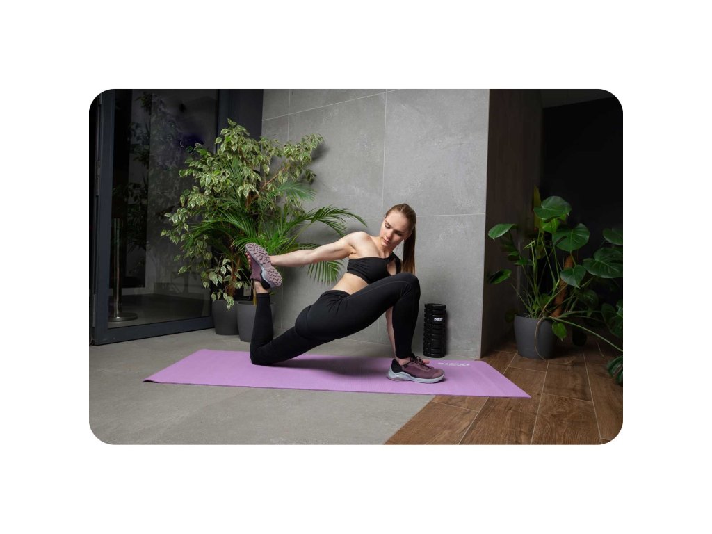- Material, iz katerega je podloga izdelana, je PVC, zaradi česar se podloga pri vadbi popolnoma prilagodi telesu, je prijetna na dotik in narejena iz močnih in odpornih materialov omogoča, da je vadba užitek!