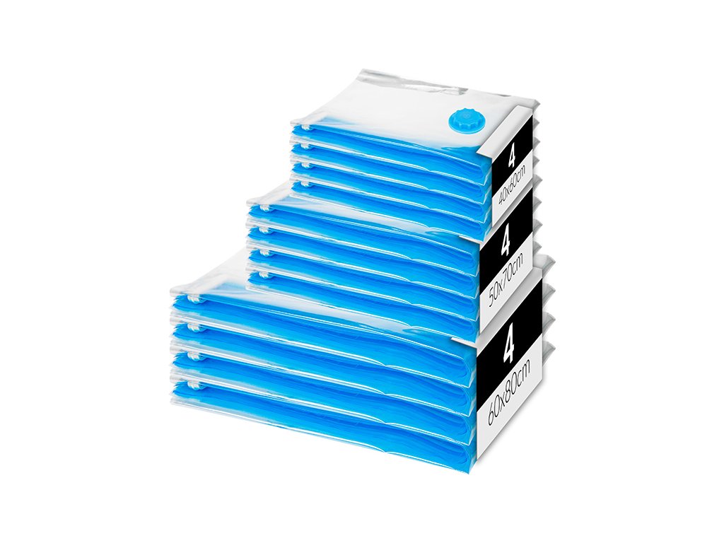 Z vakumskimi vrečkami set 12 kosov za shranjevanje lahko spremenite vsak neizkoriščen kotiček vašega doma v dragocen prostor za shranjevanje. Z njihovo pomočjo lahko shranjujete svoje sezonske predmete na varnem, suhem in urejenem mestu. Od zdaj naprej ne boste imeli težav z shranjevanjem med spremembami letnih časov. Neopazno skrijejo vaše dragocenosti pred časom in poškodbami, pri čemer ohranjajo vaše stvari v popolnem stanju, dokler jih ne boste potrebovali. Ta set je idealna rešitev za vsako gospodinjstvo, ki išče način, kako optimalno izkoristiti svoj prostor in zagotoviti zaščito svojim stvarem. Z vakumskimi vrečkami set 12 kosov za shranjevanje stres zaradi zlaganja ali pakirnih težav izgine! Red in čistoča sta na dosegu roke.