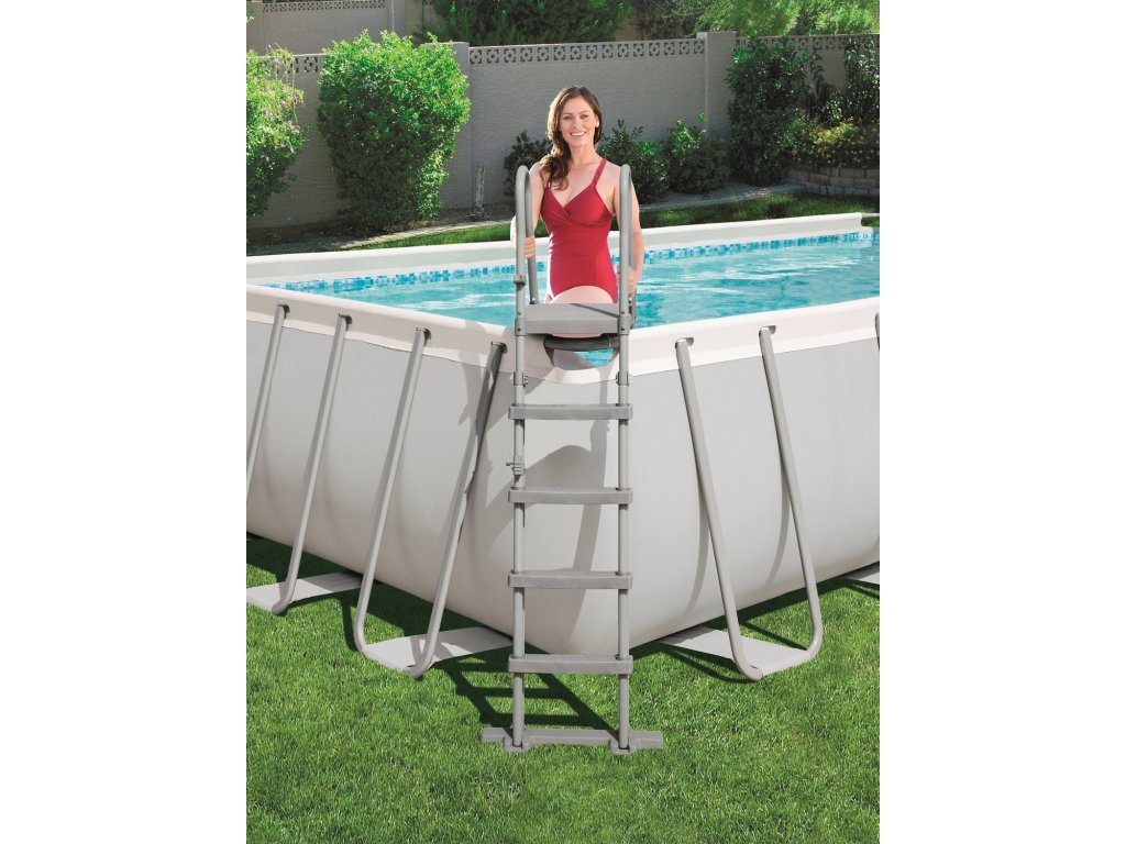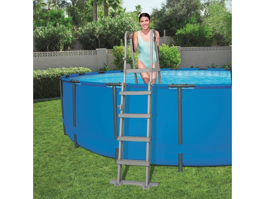 Univerzalna lestev se odlično prilagaja vsaki vrsti bazena s okvirjem in napihljivo ter klasična barvna shema bo njen odličen dodatek!