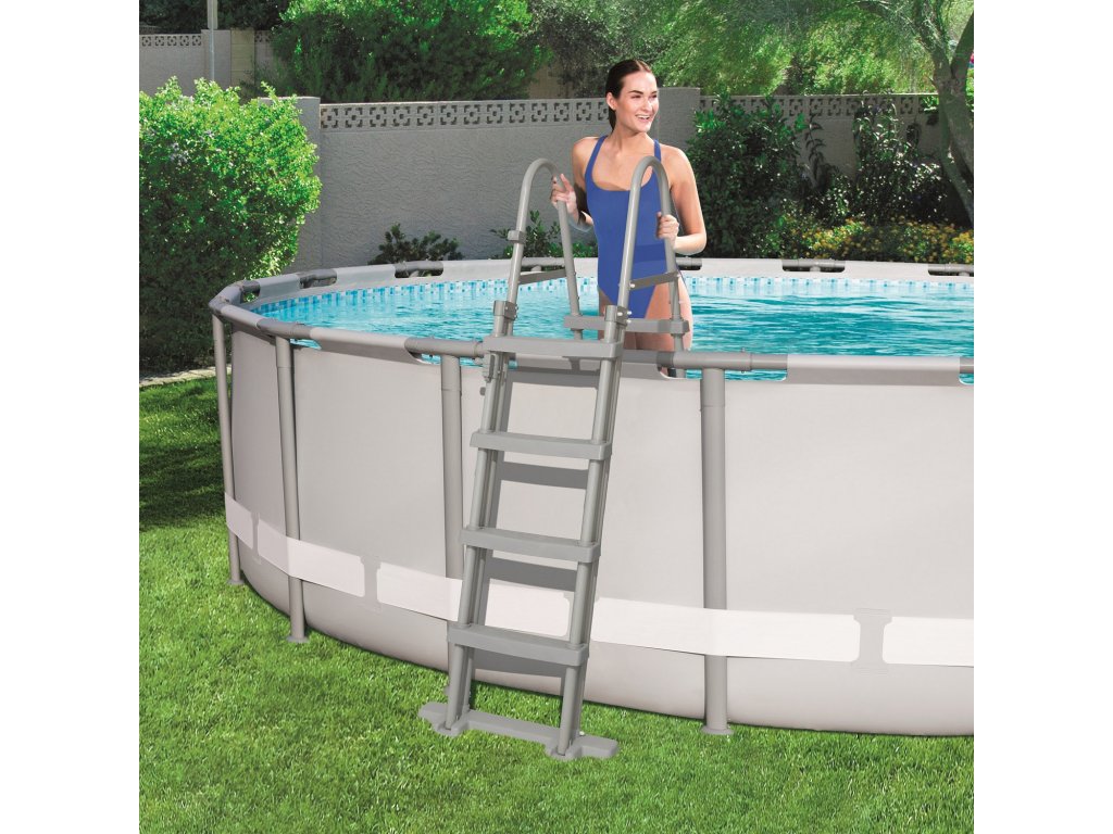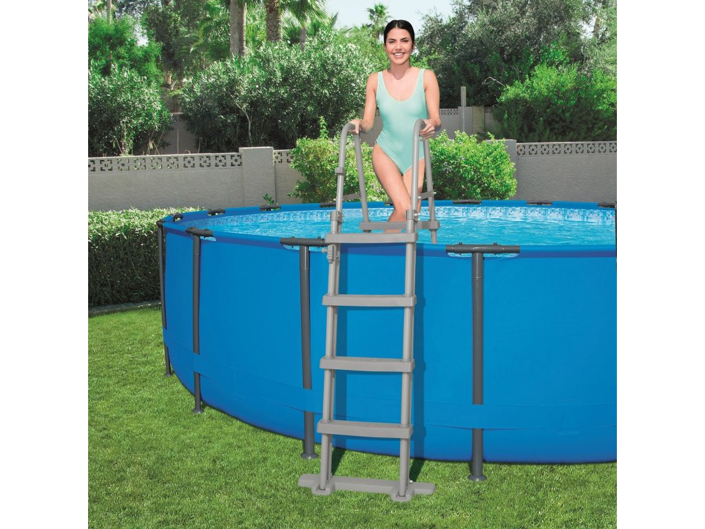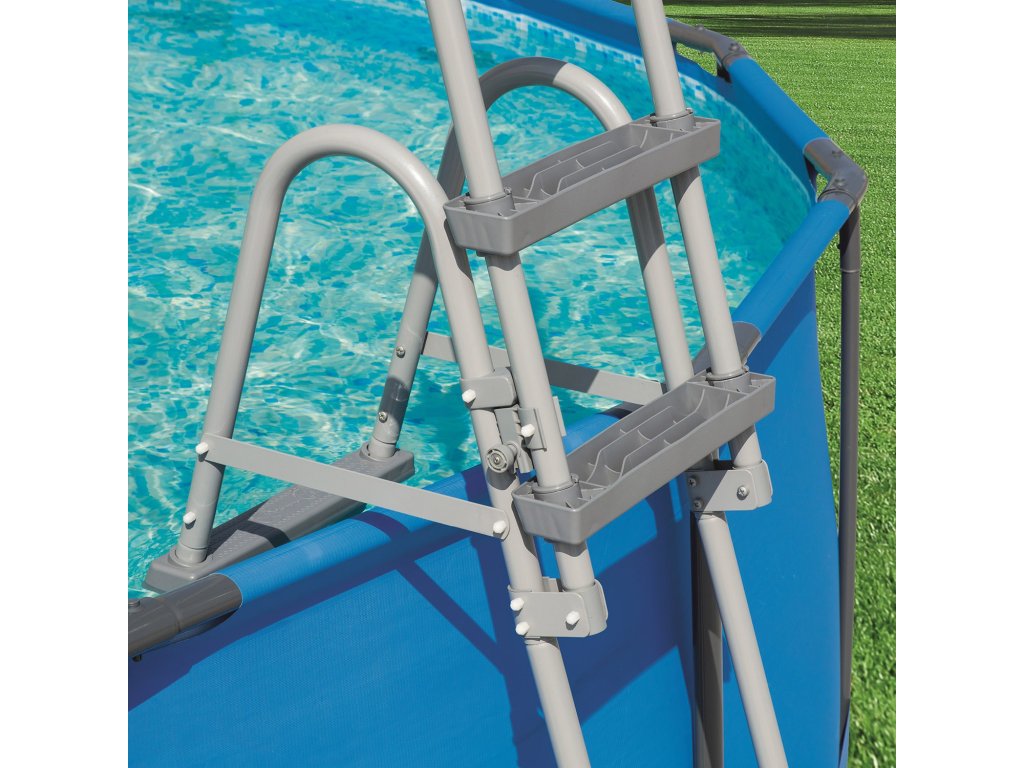 Lestev za bazen Bestway je odporna na poškodbe in velike obremenitve, njeno konstrukcijo pa tvori kovinski okvir. Nedrseča površina stopnic preprečuje nesrečne padce, priročen oprijem omogoča ohranjanje ravnotežja. Univerzalna lestev se odlično prilagaja vsakemu tipu bazena - s okvirjem ali napihljivemu, klasična barvna shema pa bo odlično dopolnila vaš bazen! Lestev je lahka in hitra za montažo, za njeno postavitev pred kopanjem potrebujete le nekaj minut. Stabilna obojestranska lestev za bazen je nova ponudba znamke Bestway, ki vaši družini zagotavlja varnost na najvišji ravni! Zaradi nje ste lahko prepričani, da so vaši otroci med igro varni.