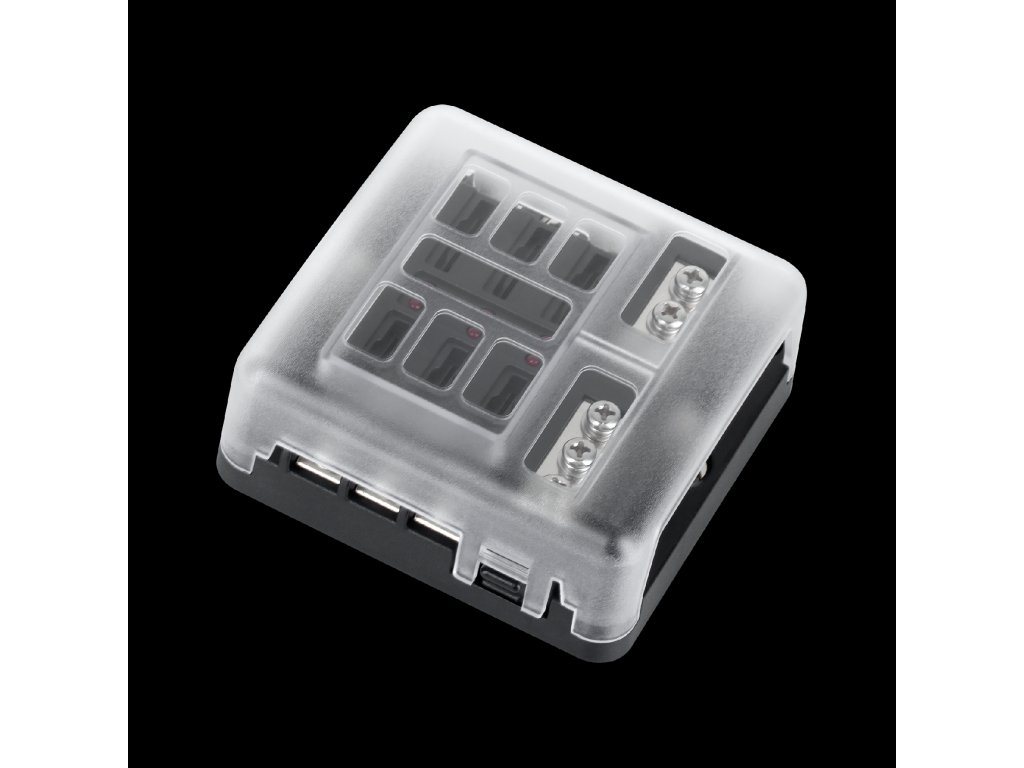 Količina vtičnic: 6 kosov; tip 19 mm Montaža: pod vijake 5 mm Maks. delovna napetost: 32 V Maks. obremenitev na en krog: 30 A Maks. delovna obremenitev na bloku: 100 A Certifikat: RoHS, ECKoličina vtičnic: 6 kosov; tip 19 mm