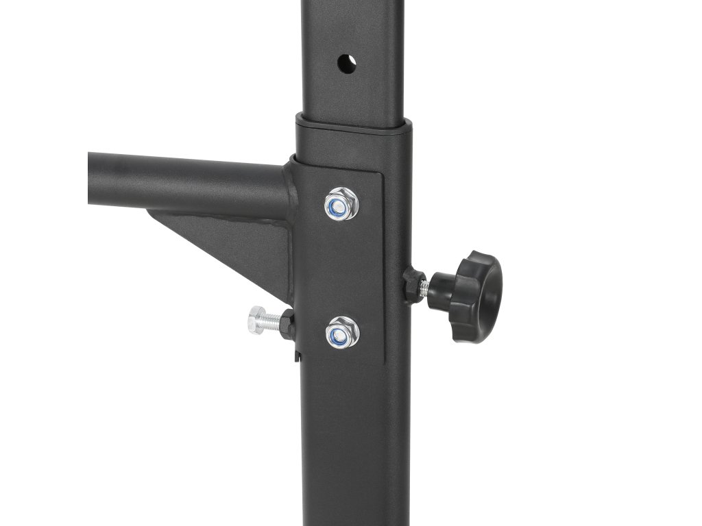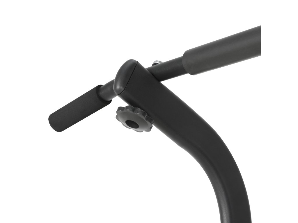 Držalo je izdelano iz trpežnega jekla s profilom 1,5 mm in lahko prenese uporabnika, ki tehta do 120 kg. Matirana črna obdelava dodaja sodoben videz in ščiti pred praskami. Trdna konstrukcija zagotavlja stabilnost tudi pri intenzivnih treningih, zaradi česar so vaje varne in maksimalno učinkovite.