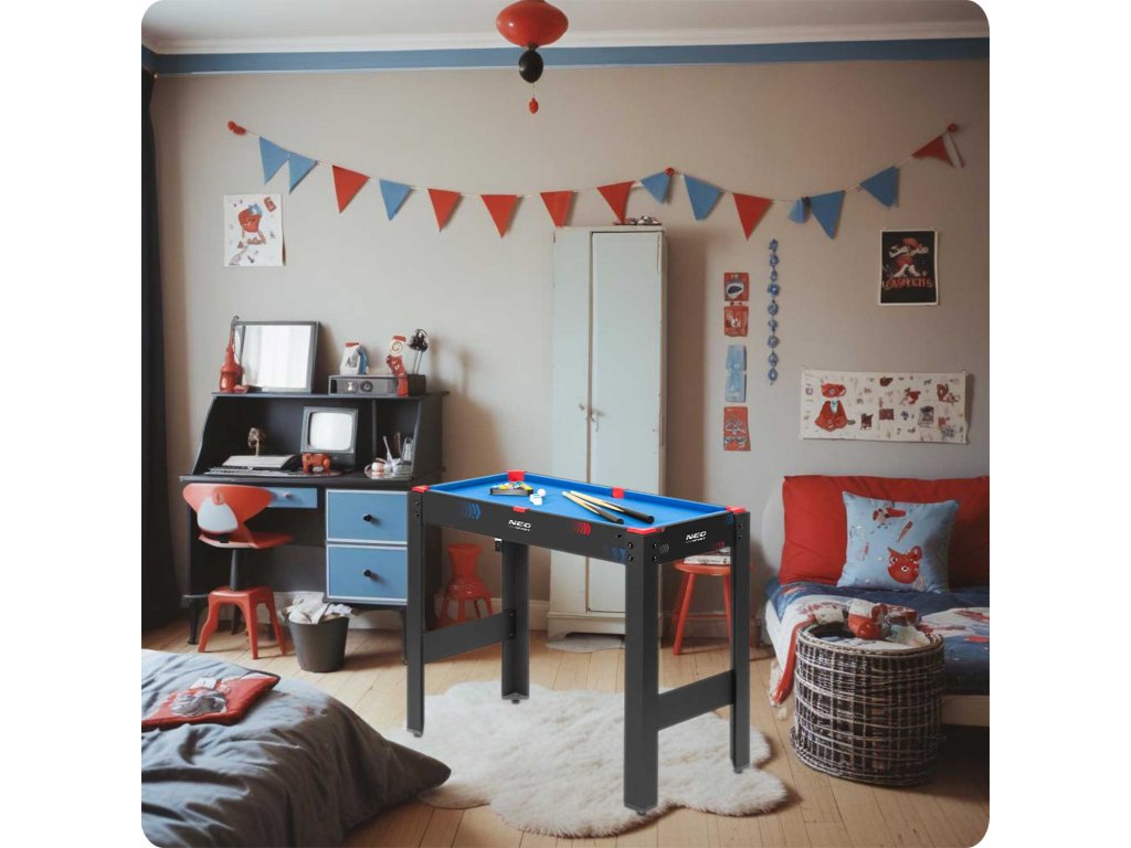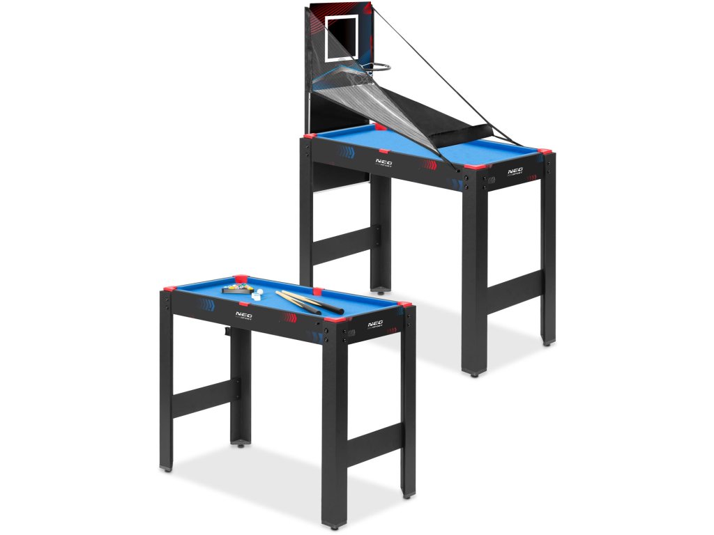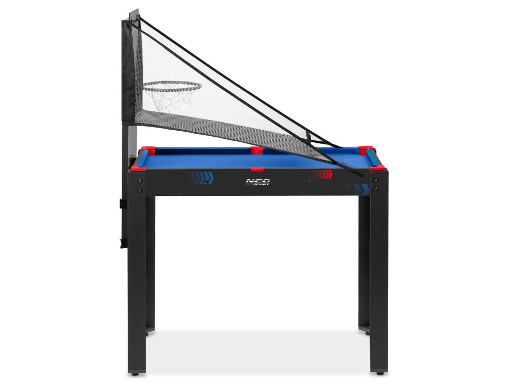 Miza z dodatno košarkarsko funkcijo - NS 810 omogoča še več športnih čustev! Brez težav jo lahko spremenite v košarkarsko mizo, in zahvaljujoč posebnemu pokrovu se izognete nenamernim strelom z mize. Odlična zabava in tekmovanje zagotovljena za prijatelje in otroke!