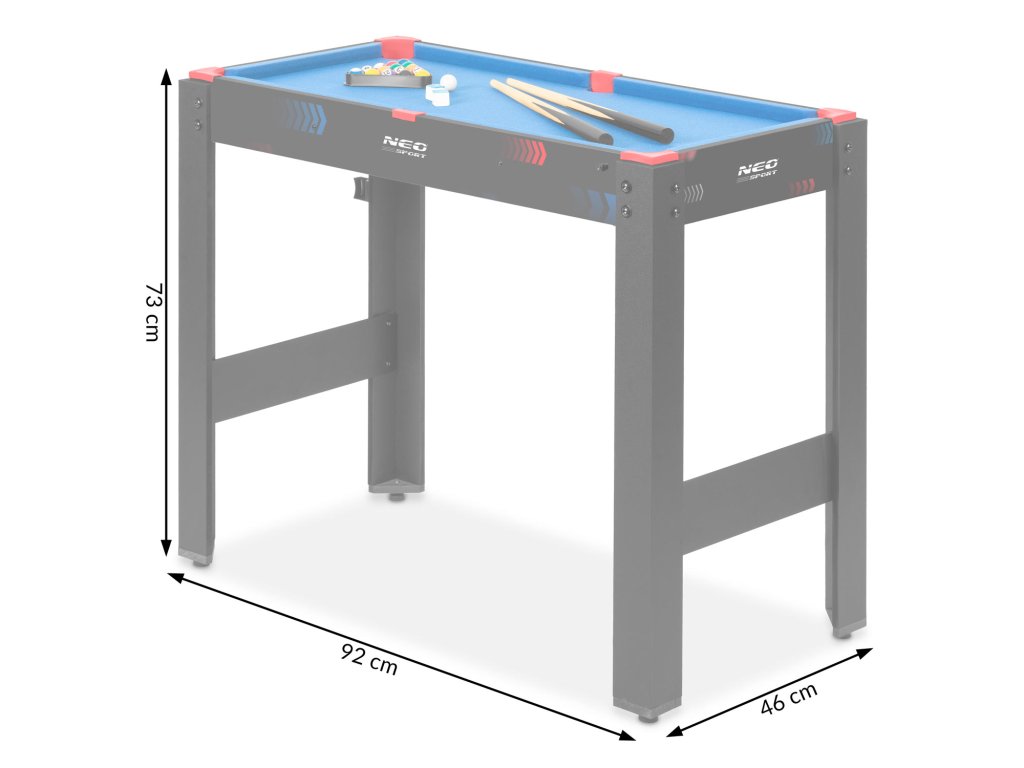 - podnožje z nogami + dvostranska plošča + biljardna miza se zloži v eno mizo, prihrani prostor.