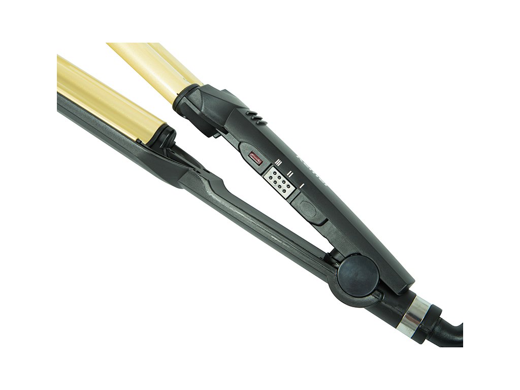 - Kakovostni materiali: Površinski premaz iz keramičnih in turmalinskih materialov zagotavlja enakomerno porazdelitev toplote in daje lasem sijaj ter mehkobo.
