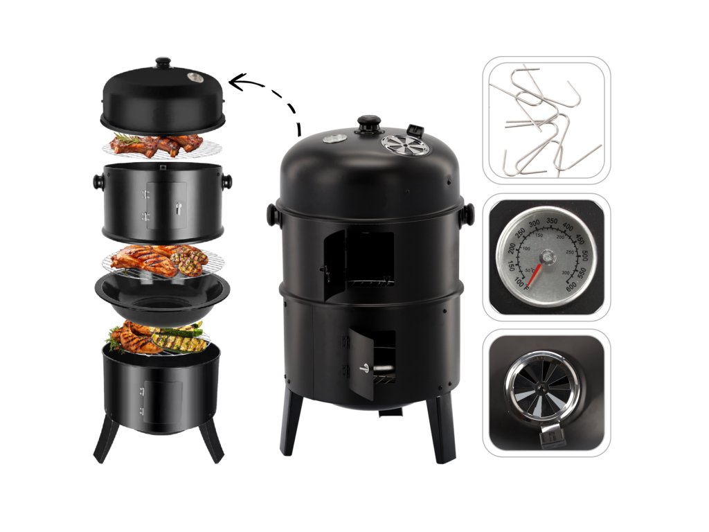 Univerzalni večnamenski grill 3 v 1 je idealna rešitev za ljubitelje griljenja, dimljenja in kuhanja na svežem zraku. Zaradi modularne konstrukcije naprave lahko služi kot grill, smohovec ali koza, kar ponuja široke možnosti kulinaričnih izkušenj.