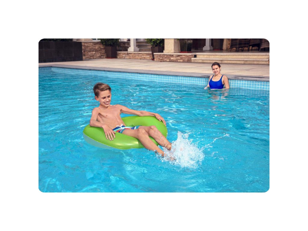 Plavalni obroč Neon Bestway pritegne pozornost zaradi privlačnih, poletnih barv.