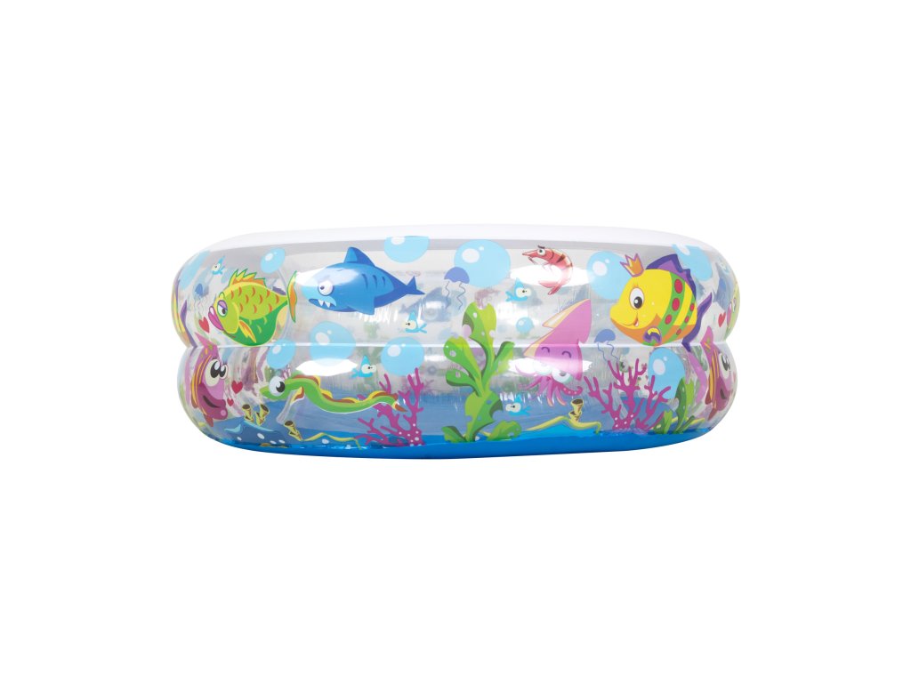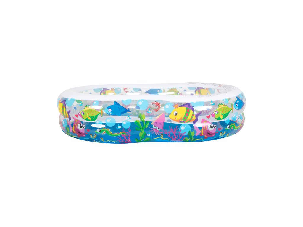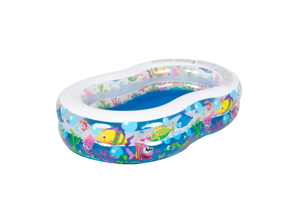 Velik bazen SUNCLUB z motivom veselih ribic je idealen kraj za zabavo v vročih dneh za otroke, starejše od 6 let. Zahvaljujoč udobnim dimenzijam in varni konstrukciji se bo odlično obnesel na domačem vrtu.