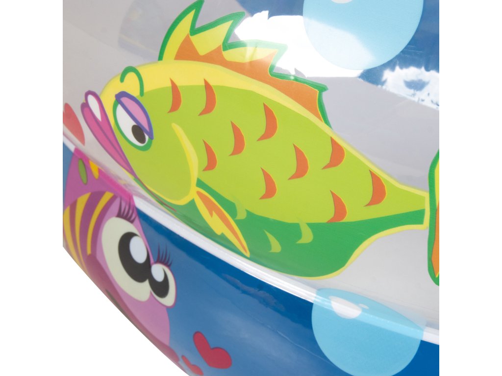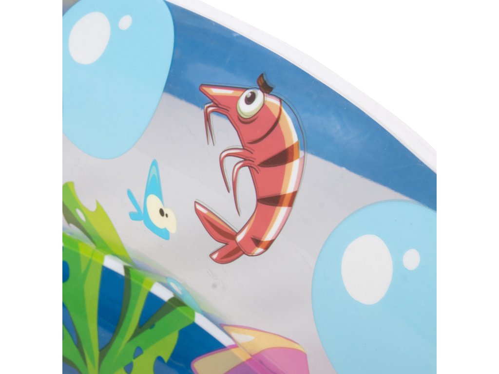 Vesel, barvit tisk z motivom ribic bo otroke popeljal v podvodni svet zabave. Prijazne grafike spodbujajo vodne prigode in ustvarjajo prijetno vzdušje, zaradi česar je vsako kopanje v bazenu vesela doživetje.