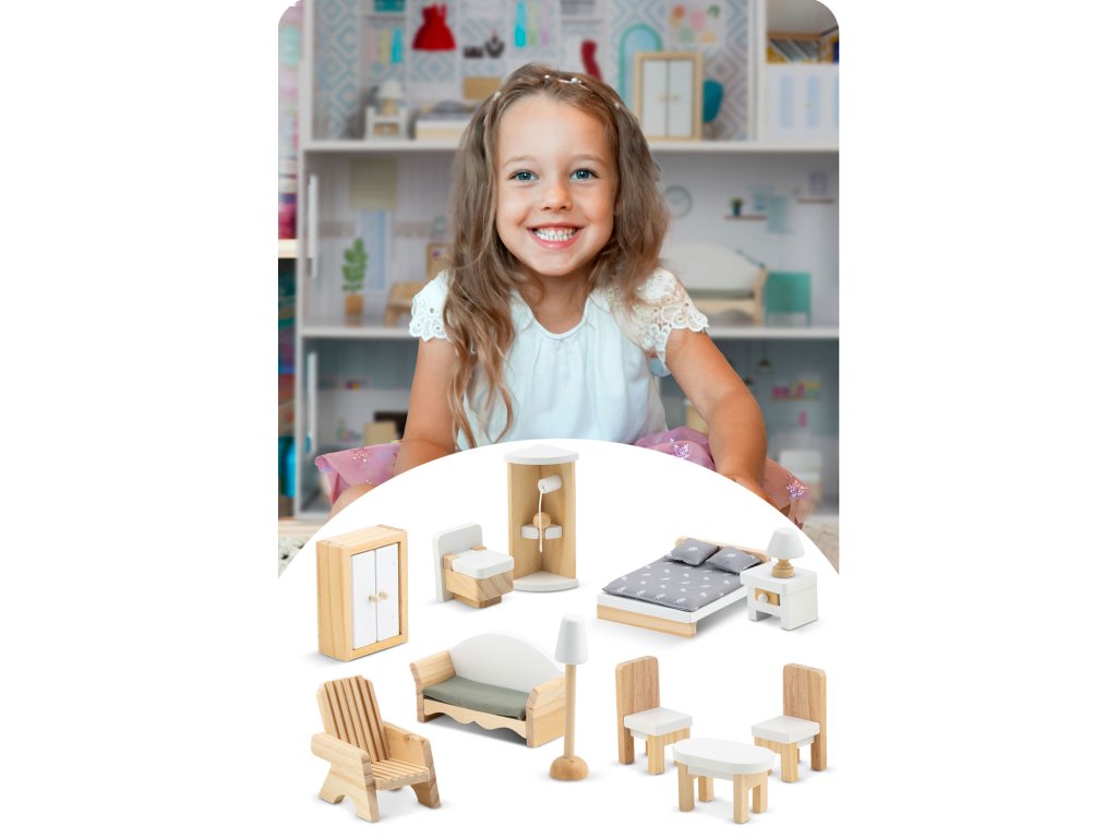 - 11 lesenih kosov pohištva v kompletu!