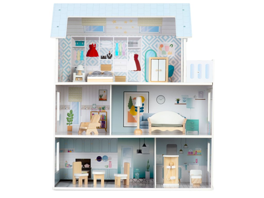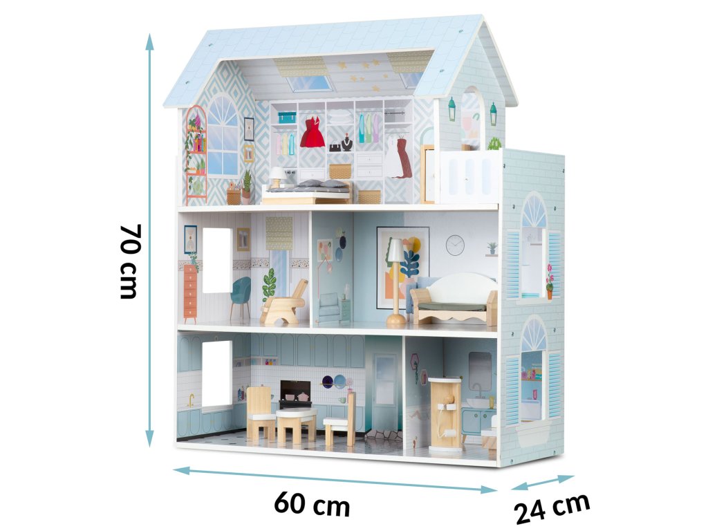 Velika Lesena hiška za punčke 3-nadstropna Ricokids RK-878