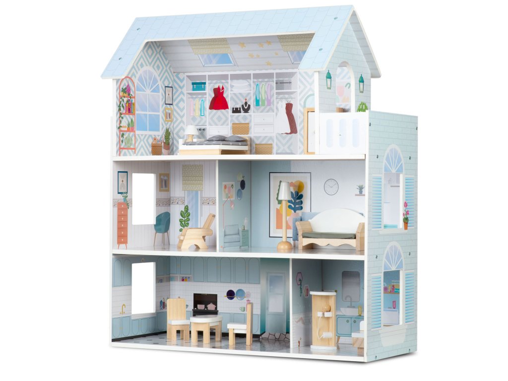 Hišica v lepih barvah, s številnimi lesenimi kosi pohištva, bo poskrbela, da se tvoj otrok ne bo želel odtrgati od igre!