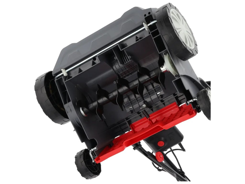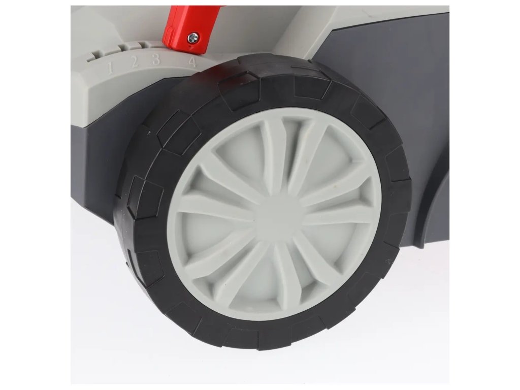 - Asimetrična kolesa (spredaj 18 cm in zadaj 10 cm) olajšajo delo