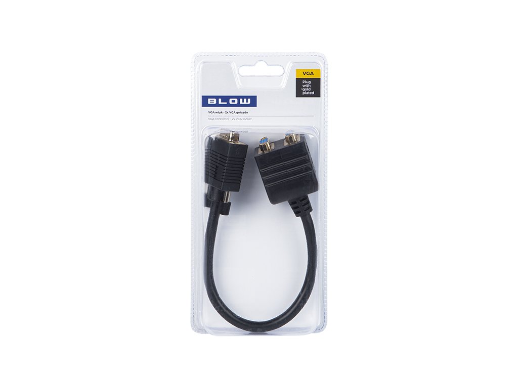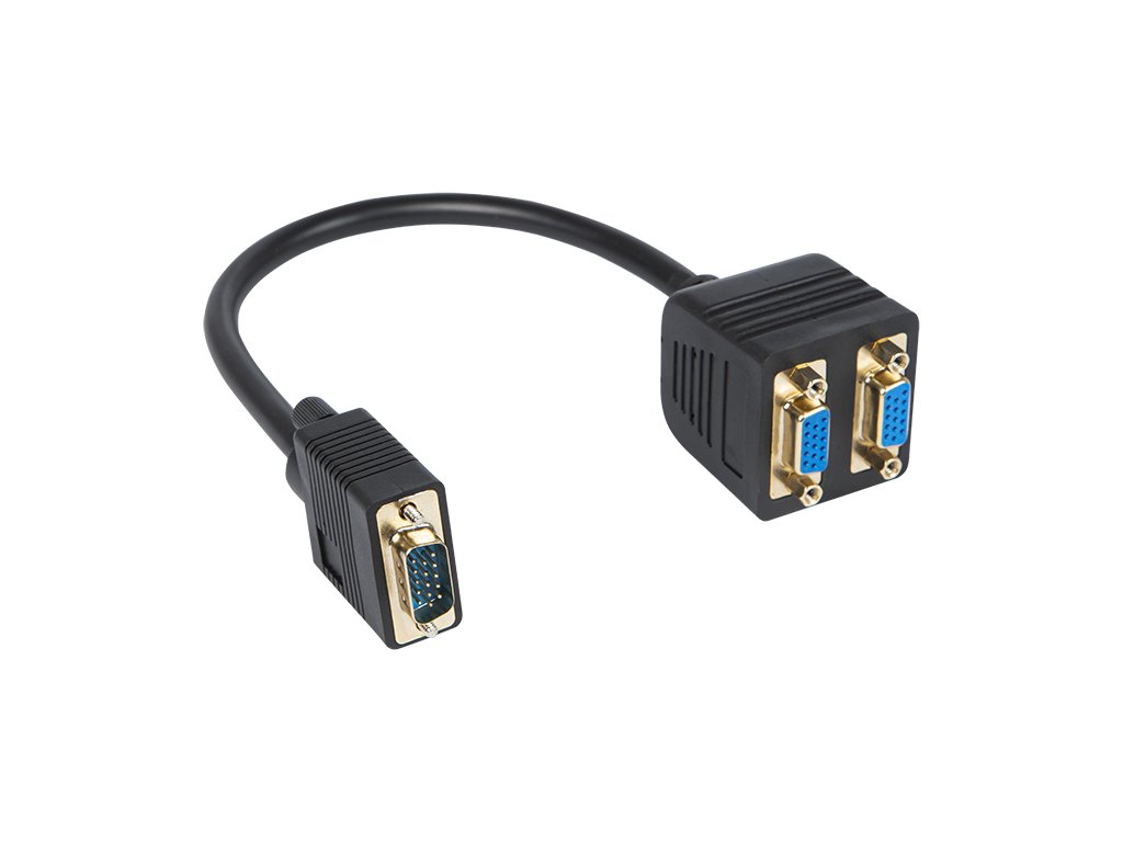 Razdelilec s kratkim kablom z vtičem VGA in dvema vtičnicama VGA.