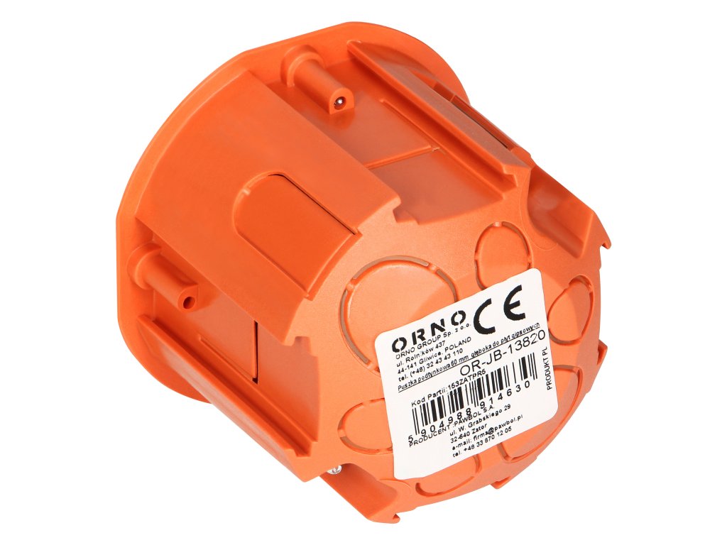 Izdelek je izdelan iz plastike v oranžni barvi. Je okrogle oblike, s premerom 68 mm. Notranja globina 45 mm omogoča montažo v omejenih prostorih.