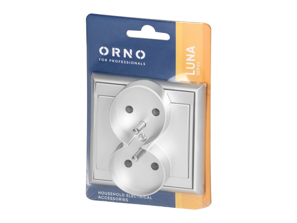 Vgradna dvojna vtičnica 2x2P+E Luna, 16A, 250V, PT-6LR, srebrna