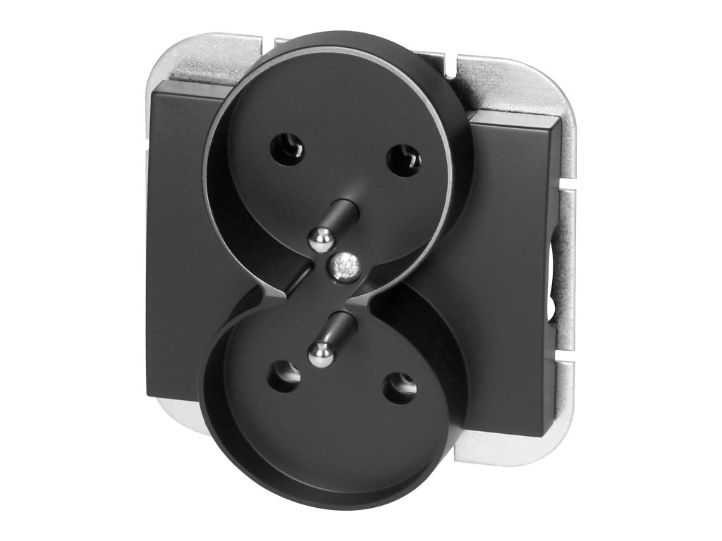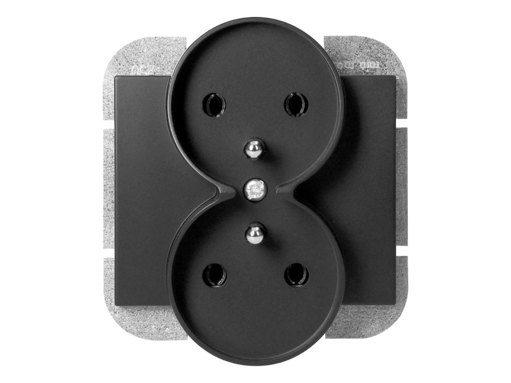 Modularna serija s sistemom okvirnih plošč. Serija modernih stikal in vtičnic, ki se harmonično zlijejo z originalnimi oblikovalskimi interierji. Moderni mehanizem hitre povezave pri stikalih (žice se povezujejo z neposrednim vstavljanjem v telo) omogoča varno in zanesljivo namestitev ter odstranitev žic. Vtičnice so opremljene s tradicionalnimi vijačnimi povezavami. Notranja zasnova terminalov zagotavlja varno povezavo žic od 0,75 mm? do 2,5 mm?. Močna in robustna mreža montažne plošče ter posebni montažni elementi omogočajo stabilno in varno namestitev v omarico.Dvojna francoska vtičnica tipa, 2x2P+E. Zasnovana za podometno montažo v sistemu okvirnih plošč. Uporabljati se mora v notranjih prostorih (IP20).