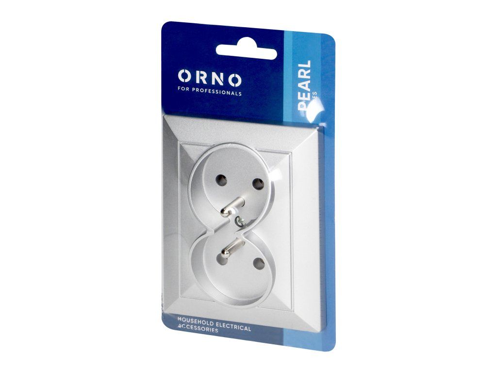 Vgradna dvojna vtičnica 2x2P+E Pearl, 16A, 250V, PT-6 P, srebrna