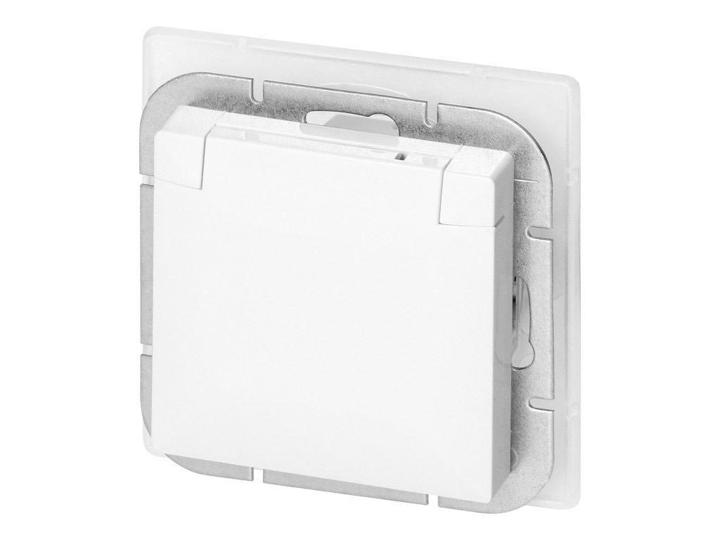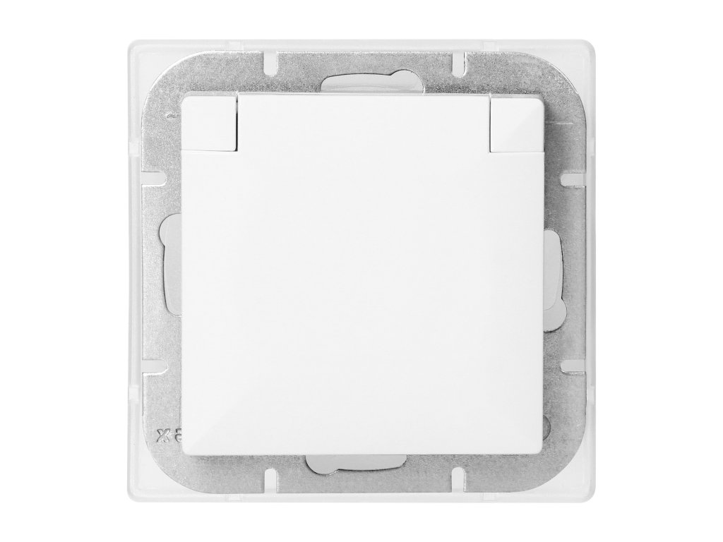 # Enoposteljna vtičnica francoskega tipa 2P+E, vremensko odporna s pokrovom. Namenjena za vgradnjo v zid. Uporablja naj se v zaprtih prostorih (IP20).