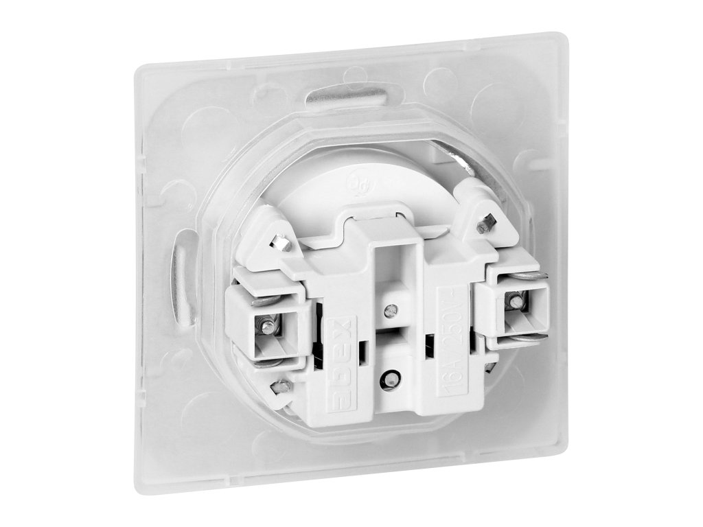 # položaj. Sodobni mehanizem hitrih povezav (žice so povezane s potiskanjem neposredno v ohišje) omogoča varno in zanesljivo namestitev ter odstranitev žic. Vtičnice so opremljene s tradicionalnimi vijačnimi spoji. Notranja zasnova priključkov zagotavlja zanesljivo povezavo žic od 0,75 mm? do 2,5 mm?. Močna in robustna mreža plošče za pritrjevanje in visokokakovostni samopovratni elementi omogočajo stabilno in varno vgradnjo v doz. Posebni vzmetni elementi olajšajo prileganje okvirja v ohišje.