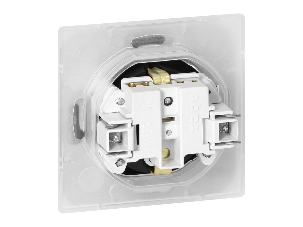 omogoča montažo izdelka v vodoravni in navpični legi. Moderne hitre spojke (žice se povežejo z njihovim potiskom neposredno v telo) omogočajo varno in zanesljivo namestitev ter odstranitev žic. Vtičnice so opremljene s tradicionalnimi vijačnimi spoji. Notranja zasnova priključkov zagotavlja varno povezavo žic od 0.75 mm? do 2.5 mm?. Močna in trpežna montažna plošča ter visokokakovostni samopovratni elementi omogočajo stabilno in varno namestitev v škatli. Posebni vzmetni elementi olajšajo vpetje plošče v telo.