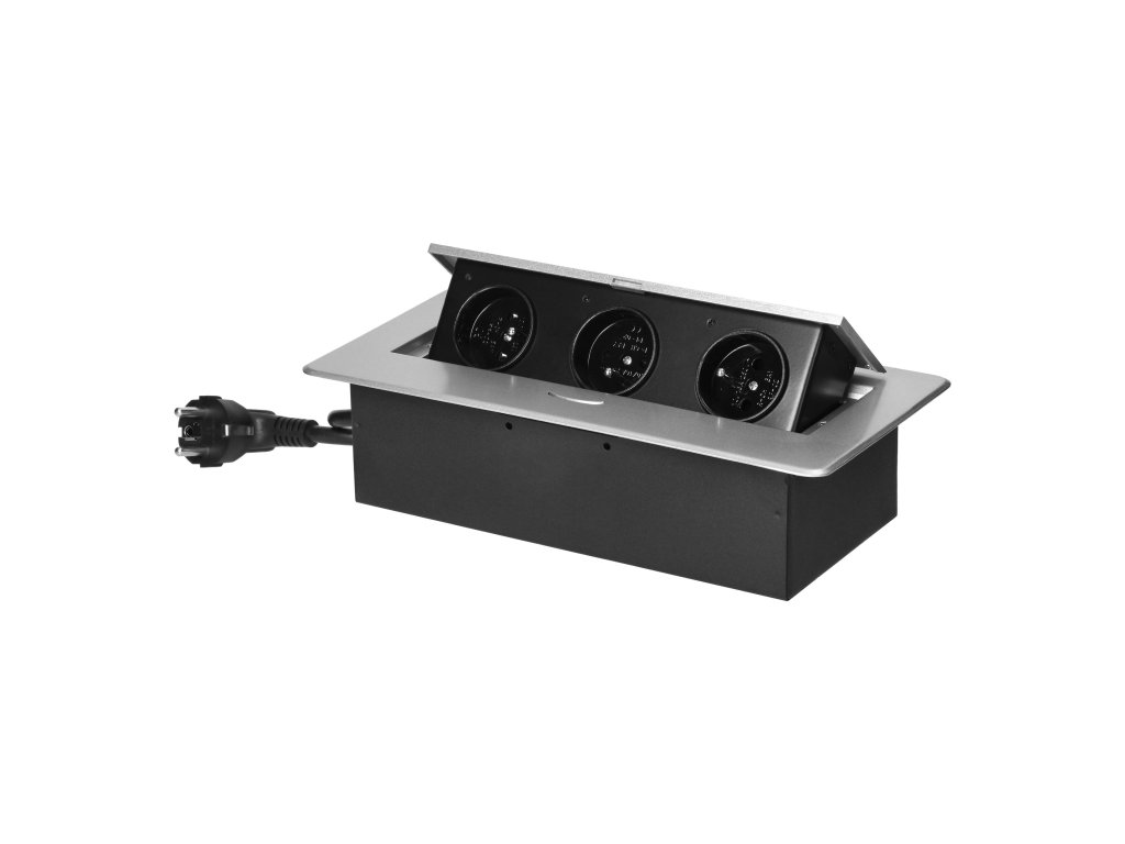 Vgradna pohištvena vtičnica, 3x2P+E, srebrna
