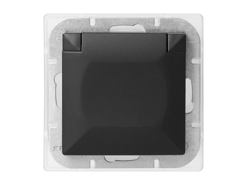 Vgrajena enojna vtičnica 2P+E vodoodporna s pokrovom Pearl, 16A, 250V, PT-16PH, črna
