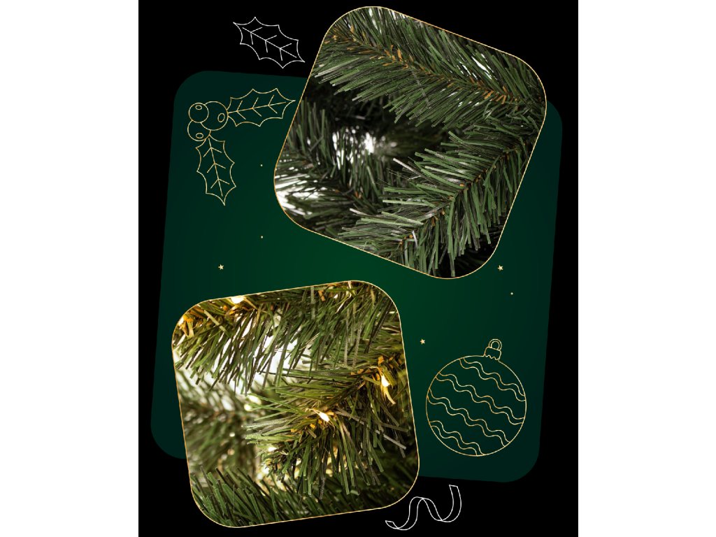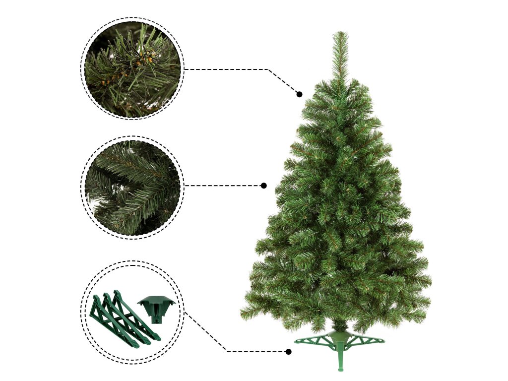 Rozpätie v závislosti od usporiadania vetiev vianočného stromčeka je približne 60 cm